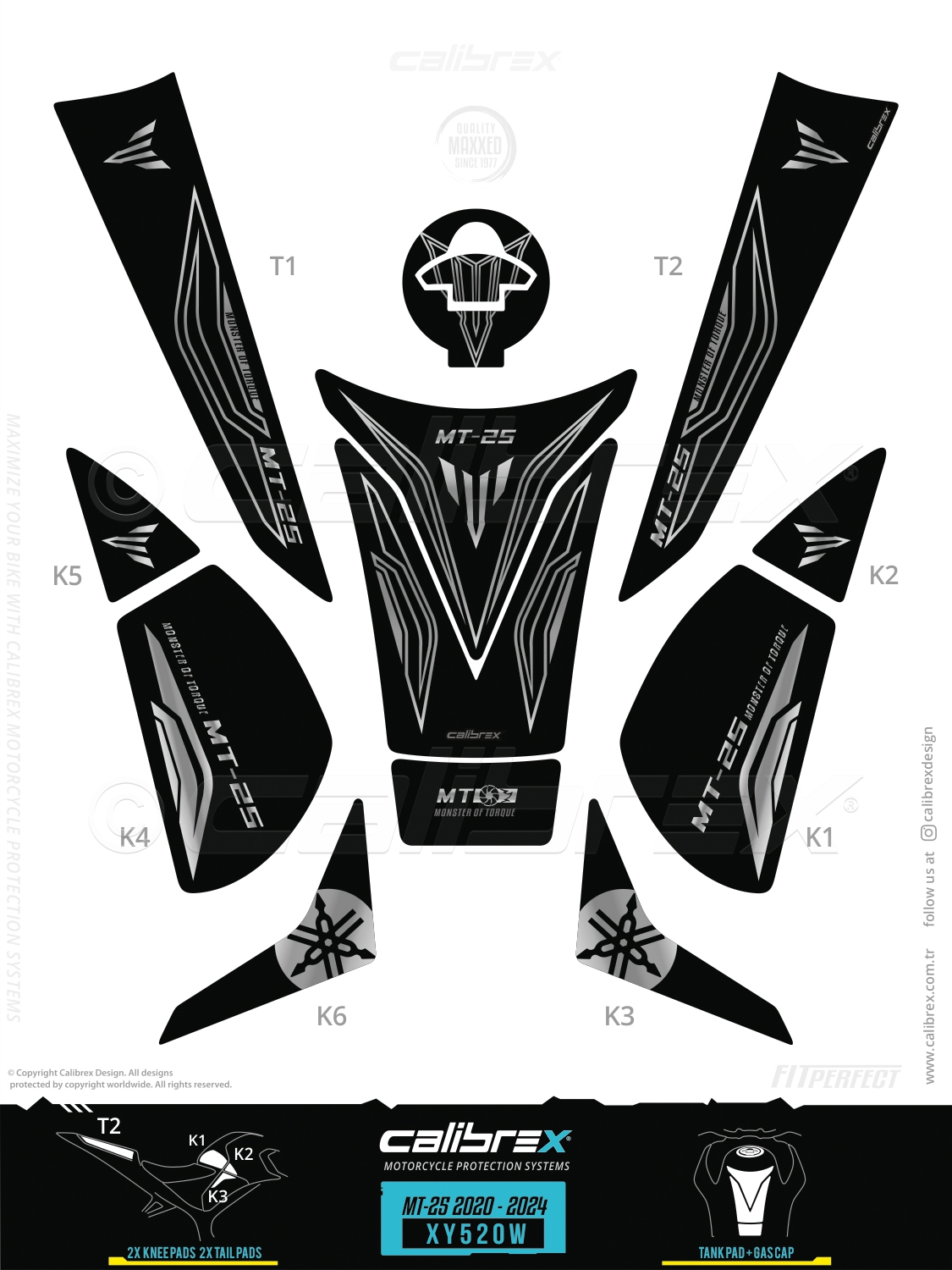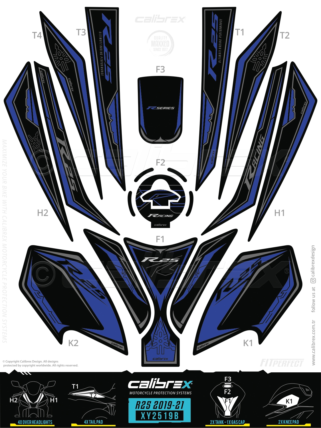 Yamaha R25 2019-2020-2021 Tank Pad – Diz Pedleri – Ön Kaplama Pedleri – Kuyruk Pedleri Komple Set Mavi Kalibrex